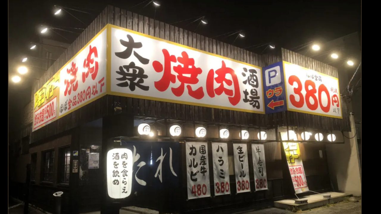 ほぼ全品380円以下で、名物アカ・シロをはじめ、ネギ塩豚タン、炙り牛寿司、国産牛カルビなど自慢の焼肉が勢揃い。